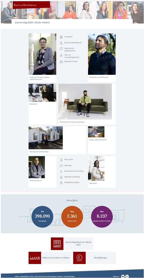 Ook zijn in dit jaarverslag de cijfers over 2024 te vinden, een kwantitatieve weergave van de uitvoering van de Raad en de kerncijfers voor de gesubsidieerde rechtsbijstand, de wettelijke schuldsanering en tolken/vertalers.